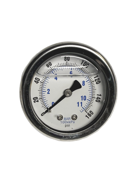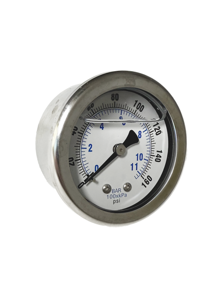CWS 1/8'' 2'' D 0-160 PSI Rear Mount Liquid Filled Pressure Gauge
