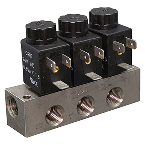 GC Valves Stainless Steel Low Pressure Non-Metering Normally Closed 3-Station Manifold Block