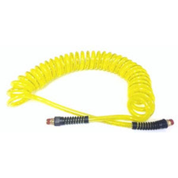 Freelin-Wade Flexeel Yellow Poly 3/8" x 25' Coil Hose Tubing with Hose Guard and Swivel - Professional Pneumatic Solution for Mobile Applications